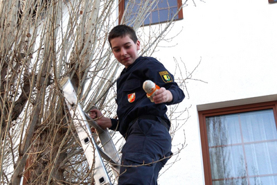 In der Jugendstunde am Karsamstag standen das Errichten einer Saugschlauchleitung und Knotenkunde am Programm. Als kleines Extra gab es für perfekte Knoten und richtiges Arbeiten bei der Saugleitung kleine Osterüberraschungen. Aufmerksame Feuer Kids entdeckten plötzlich einen Osterhasen in der Dachrinne des Gföhler Feuerwehrhauses, schnell rückte die Drehleiter aus, um den Hasen zu retten. Auch ein zweiter und ein dritter Schokoosterhase musste gerettet werden. Aus luftiger Höhe entdecke man, dass der Osterhase rund ums FF-Haus einige Sachen verloren hatte. Eine große Suchaktion begann, wobei einige Sachen nur mit der Schiebleiter zu erreichen waren. Am Ende der Jugendstunde wurden alle Ostereier und Hasen auf die Jugendlichen aufgeteilt.