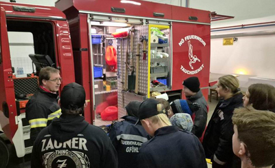 Mitglieder des Tauchzuges Nord, der in Weißenkirchen/Wachau stationiert ist, besuchten mit ihrem Fahrzeug am 23. November 2024 die Feuerwehrjugend in Gföhl. Der Tauchdienst ist die Spezialeinheit für Einsätze unter Wasser. Der Tauchzug Nord ist einer von vier Tauchzügen des Niederösterreichischen Landesfeuerwehrverband (NÖ LFV). Die Jugendlichen erhielten Informationen über die Ausrüstung und das Aufgabengebiet. Danach konnte die Tauchbekleidungen probiert werden. Ein bleibender Eindruck war auch der simulierte Tauchgang, bei dem mit verbundenen Augen Gegenstände beschrieben werden mussten. Herzlichen Dank an das Tauchteam für die interessanten Erklärungen.