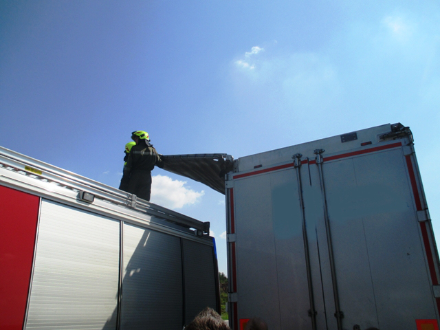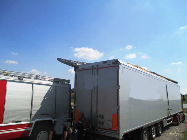 Vermutlich durch ein technisches Gebrechen löste sich die Ladegut-Abdeckung eines LKW-Auflegers.