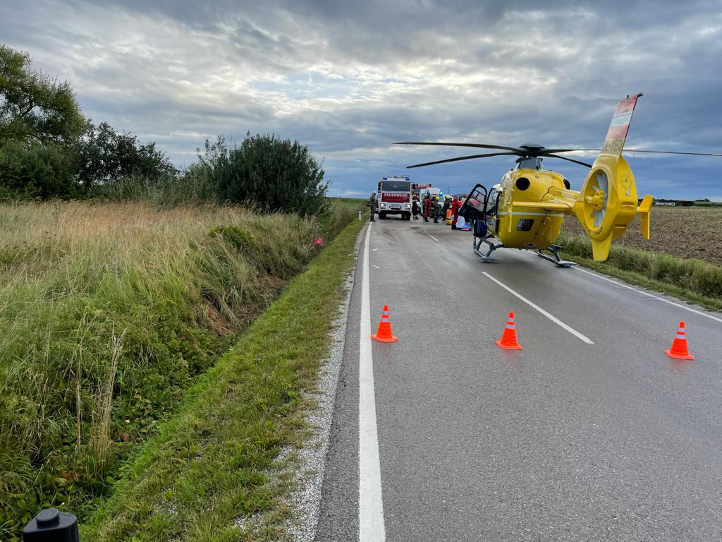Ein mit zwei Personen besetzter PKW geriet auf der L 76 auf der Fahrt aus Richtung Reittern in Richtung B37 ins Schleudern, überschlug sich und kam auf einer Straßenböschung wieder zum Stehen. Die verklemmte Beifahrertür musste mittels hydraulischem Rettungsgerät der FF Gföhl geöffnet werden. Zur medizinischen Versorgung der beiden Personen waren der Notarzthubschrauber C2, das Rote Kreuz (NEF, RTW Gföhl und RTW Krems) am Einsatzort.