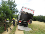 Die FF Gföhl rückte mit RLFA 2000 und 6 Einsatzkräften aus und sicherte das Fahrzeug mit der Seilwinde. In weiterer Folge wurden die Vorderräder mit Hilfe von Hebekissen gehoben und unterpölzt, sodass das Fahrzeug selbständig wieder zurück auf den Weg fahren konnte.