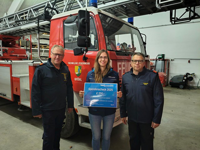 Alle Jahre wieder haben Mitarbeiter und Mitarbeiterinnen der Firma kpp consulting gmbh die Möglichkeit, eine Spende der Firma an eine gemeinnützige Organisation ihrer Wahl zu übergeben. Michelle Völker hat sich heuer wieder für die FF Gföhl entschieden, wofür wir herzlich danken. Die Übergabe fand am 11. November 2024 im FF-Haus Gföhl statt. Im Bild von links: Kommandant-Stv. Gottfried Gießrigl, Handlungsbevollmächtigte Michelle Völker und Kommandant Gerald Riegler.