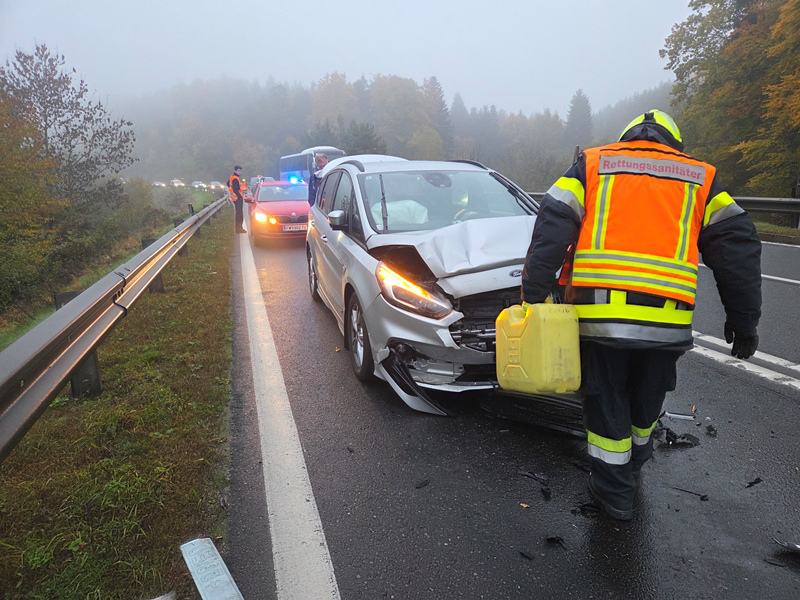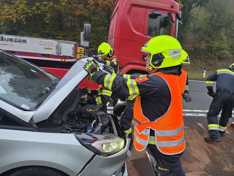 Gegen 07.32 Uhr wurden am Mittwoch, 22. Oktober 2025, die Feuerwehren Gföhl und Jaidhof zu einem Auffahrunfall, an dem zwei PKWs beteiligt waren, auf die B37, Kilometer 15,400 (K.G. Gföhleramt, Gemeinde Gföhl) alarmiert. Im dichten Morgenverkehr wurde die Unfallstelle zunächst abgesichert und ein einfacher Brandschutz aufgebaut.