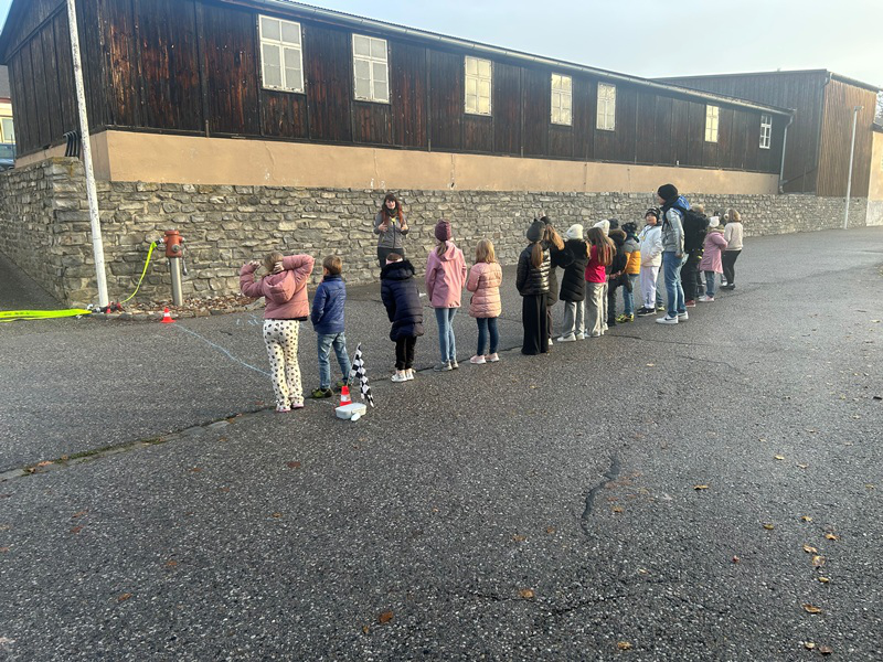 "Hallo Auto!" wurde für 8- bis 9-jährige Volksschüler entwickelt. In diesem Alter kann sich so gut wie keiner vorstellen, wie lange es dauert, bis ein Auto zum Stillstand kommt - ein gefährliches Unwissen. Dem begegnet diese vom ÖAMTC und AUVA unterstützte Aktion auf spielerische Weise: Die Kinder laufen miteinander um die Wette und sollen dabei plötzlich stehen bleiben. Schon diese Übung zeigt, wie schwer das Bremsen ist. Später schätzen sie den Anhalteweg eines Autos bei Tempo 50 und müssen feststellen, wie leicht man sich dabei irren kann. Anschließend dürfen die Kinder selbst den Wagen zum Stehen bringen. Dazu wird ein Fahrzeug mit einer Doppelbremsanlage eingesetzt. Die Kinder sitzen neben dem Fahrer gesichert in einem Kindersitz und führen - völlig ohne Gefahr - unter Anleitung eine Vollbremsung durch. Diese Erfahrung soll dazu beitragen, dass sich die Kinder viel vorsichtiger im Straßenverkehr bewegen. Unsere Schülerinnen und Schüler der 3. Klassen hatten somit einen lehrreichen und spannenden Vormittag.