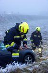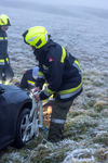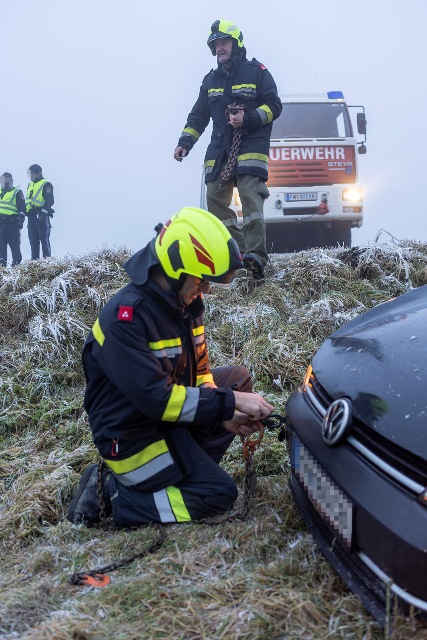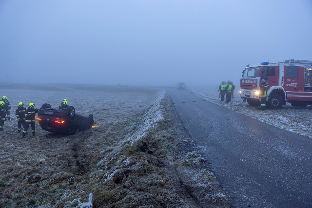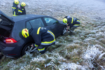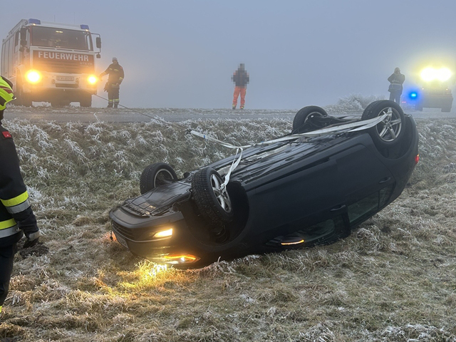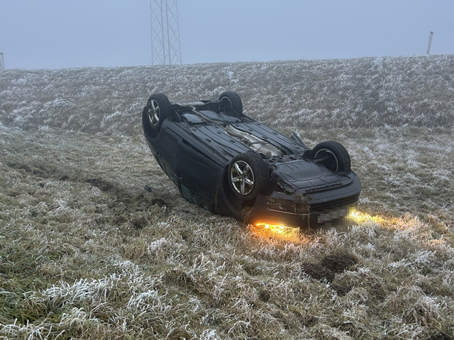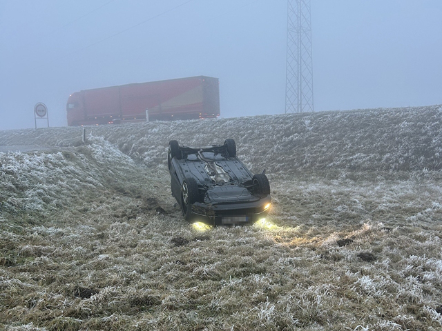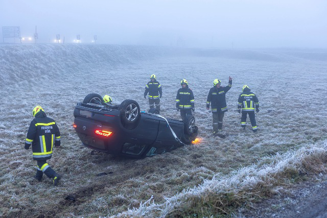 Im Bereich der B37-Abfahrt Gföhl-West geriet ein PKW am Dienstag, 16. Dezember 2025, gegen 8 Uhr früh in das Auffangbecken und blieb auf dem Dach liegen. Auf Grund der zunächst unklaren Lage wurde Alarmstufe T2 ausgelöst und per Sirene die Feuerwehren Gföhl, Sperkental und Lichtenau (Feuerwehren mit hydraulischen Rettungsgeräten) alarmiert.