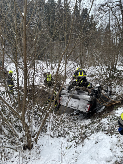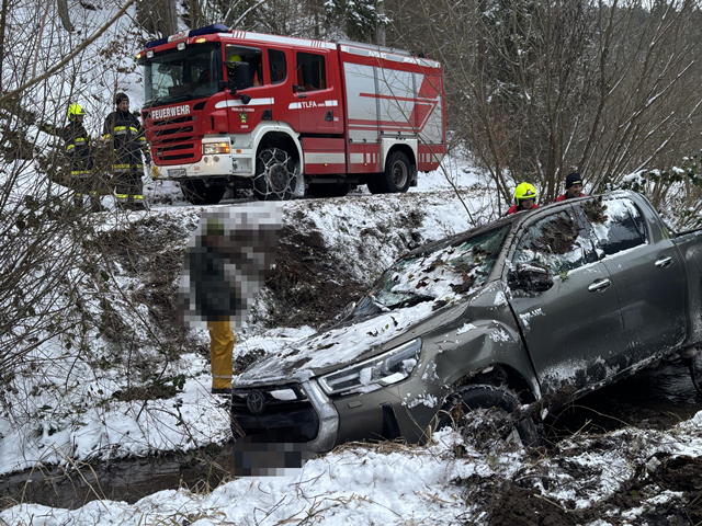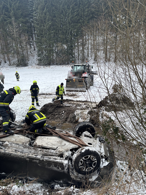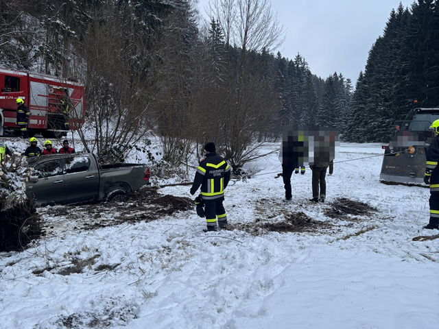 Ein mit einer Person besetzter Pickup rutschte in Eisenbergeramt (Gemeinde Jaidhof) von der Fahrbahn, geriet über eine Böschung und blieb in Folge auf dem Dach liegen. Die FF Gföhl unterstützte die örtlich zuständige FF Jaidhof bei der Bergung des Fahrzeuges. Mittels RLF Gföhl und Tank Jaidhof wurde gegengesichert und der Pickup durch einen Traktor auf die Räder gestellt und auf die Fahrbahn gezogen. Von der Fahrbahn wurde der PKW mittels Abschleppachse weggestellt. Der Einsatz konnte nach rund vier Stunden erfolgreich abgeschlossen werden.