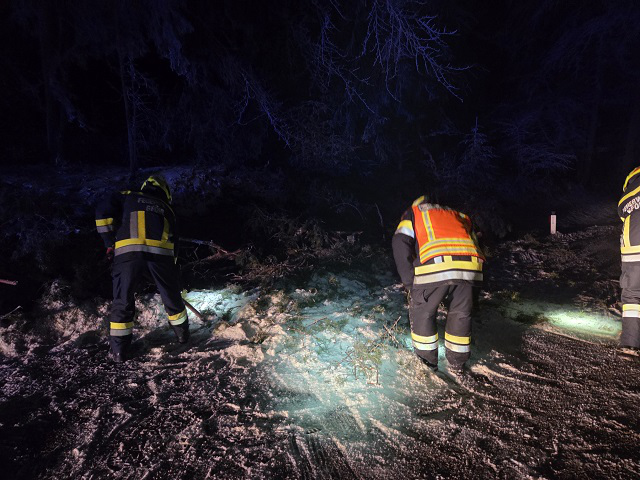 In der Nacht von Samstag auf Sonntag stürzte auf Grund des Raureifs ein Baum auf die Straße Richtung Dross. Die FF Gföhl rückte mit dem KLF, dem MTF und 4 Mitgliedern zur Einsatzstelle aus. Nach der Beseitigung der Baumteile wurde der abgefallene Raureif von der Fahrbahn entfernt.