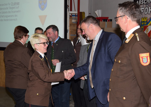 Ehrenzeichen für vieljährige verdienstvolle Tätigkeit auf dem Gebiete des Feuerwehr- und Rettungswesens des Landes NÖ für 25-jährige Tätigkeit: Martin Koppensteiner, Renate Schmöger, Elisabeth Schödl, Helmut Spreitzer